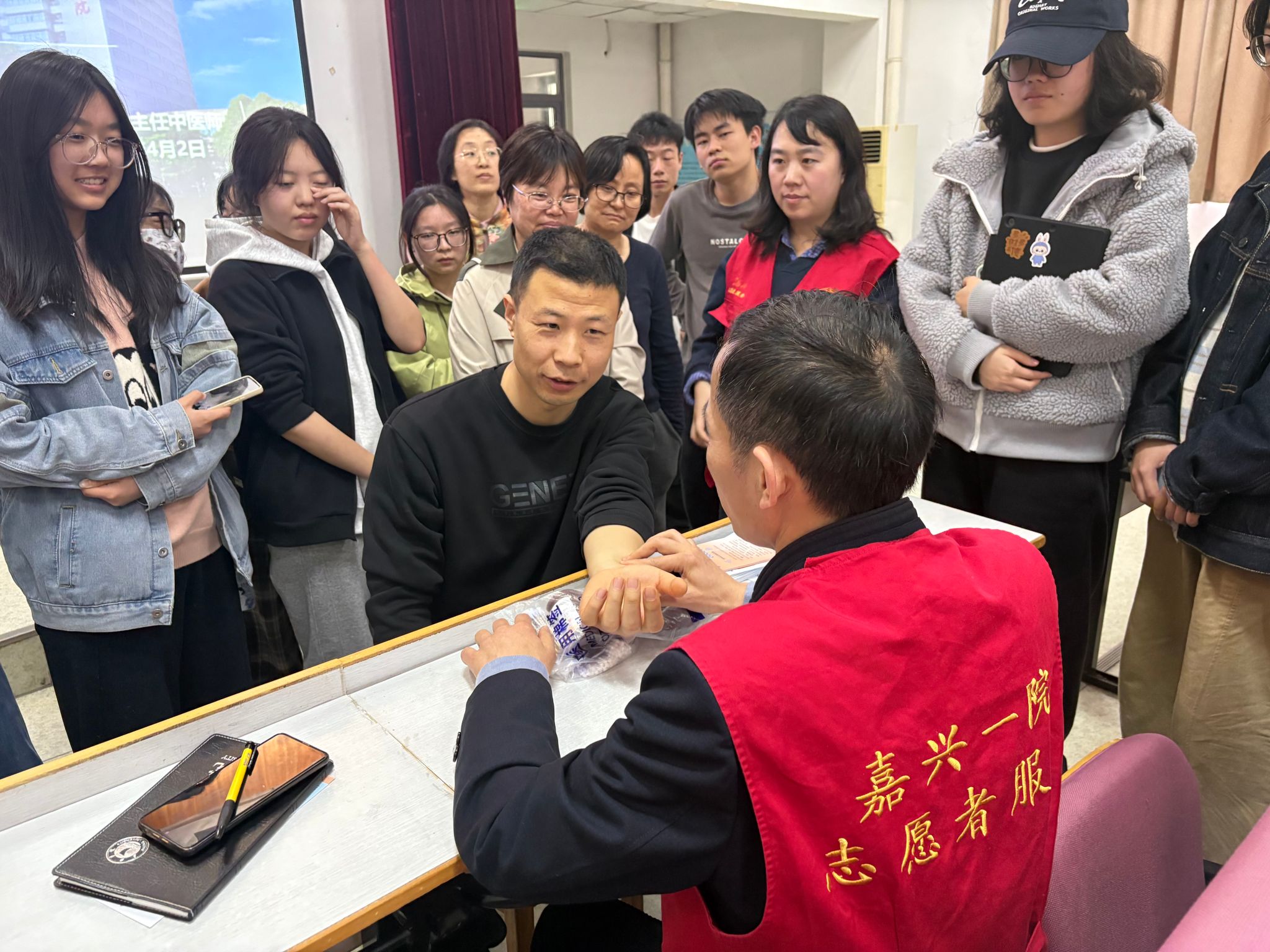 4月2日下午,大学生心理健康教育中心联合工会举办中医专题讲座,特邀嘉兴市第一医院主任中医师张爱军主讲。张医生结合春季“肝气易亢”的中医理论,讲解了头痛、失眠的常见类型,介绍了针灸穴位及八段锦、饮食调理等“疏肝调神”方法,并现场开展义诊,为师生把脉、答疑。