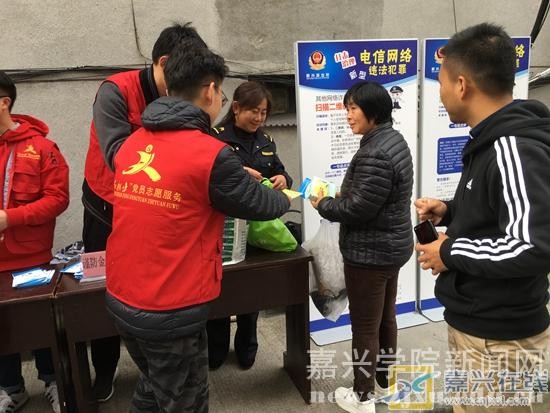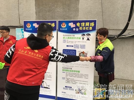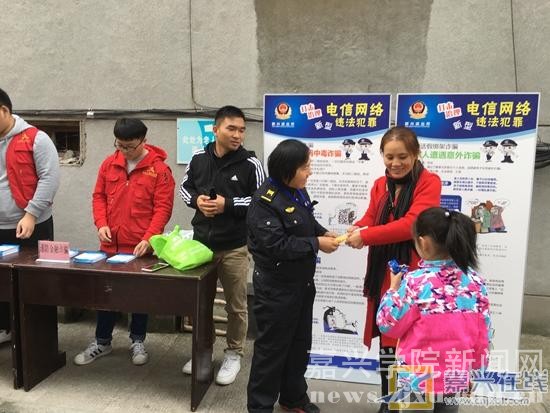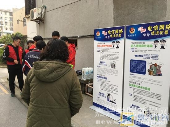 嘉兴在线11月20日讯 今天,新兴街道王安社区利用展板开展防范网络诈骗宣传。为了提高辖区居民对网络安全的意识,避免发生网络诈骗案件,社区组织嘉兴学院义警和大学生党员志愿者,特别是对老年人的网络安全知识教育,以发放宣传手册和居家小礼物的形式,宣传防范网络诈骗。