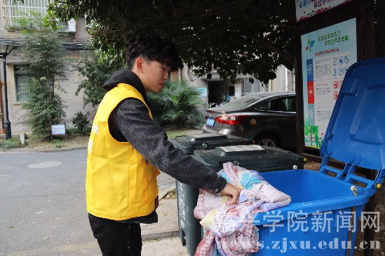 嘉兴在线讯 为加强居民垃圾分类的意识,促进社区和谐发展,10月31日上午,新兴街道明月社区组织嘉兴学院大学生志愿者在吉明里小区进行垃圾分类劝导活动。