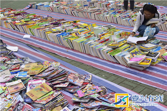嘉兴在线10月15日讯 今天上午,嘉兴学院越秀校区公寓楼门前的广场上,满地的各学科书籍吸引了不少同学购买,原来这些书是上一届同学留下的参考书籍,2折左右的价格让需要的同学如获宝贝。