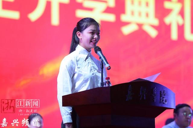 “嘉院二代”——师范学院小学教育系左一旸同学作为新生代表发言。她说,妈妈是嘉兴学院91届的毕业生,对学校有着很深的感情,她就是寻着妈妈的足迹,毫不犹豫地踏进了嘉兴学院的大门。未来几年,她将和所有新生一道心怀家国,坚定理想,脚踏实地,求是求真求正。