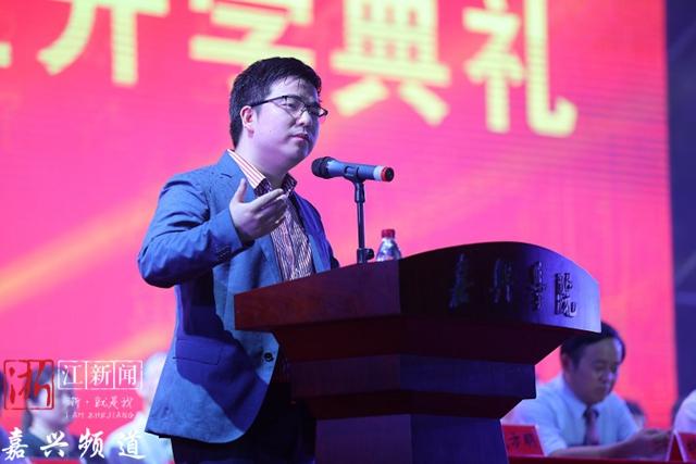 嘉兴学院2012届校友陈建可,现任浙江雄猫软件有限公司董事长在开学典礼上回忆了自己美好的大学时光。他动情地说:“母校对于我而言是世上最好的大学。”他分享了两个关于学业、事业的小故事,勉励学弟学妹要努力学习,学以致用;坚定信心,相信未来。