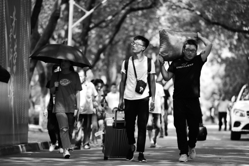 上图:走进校园——在嘉兴学院越秀校区,从全国各地赶往嘉兴的2018级大学新生走进校园报到,开启大学生活。