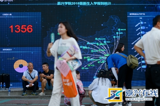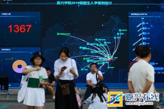 嘉兴在线8月31日讯 今天,嘉兴学院6707名大学新生开始报到。在报到现场,一块电子大屏幕上显示着实时报到人数、各专业报到进度、生源地、男女比例等,大数据一目了然。据了解,这是嘉兴学院自主研发的报到迎新系统第一次投入使用,新生在家中就通过APP、微信、网站等通道完成入校前的自助办理,到达报到现场后扫码即可完成报到,大大提高了效率。