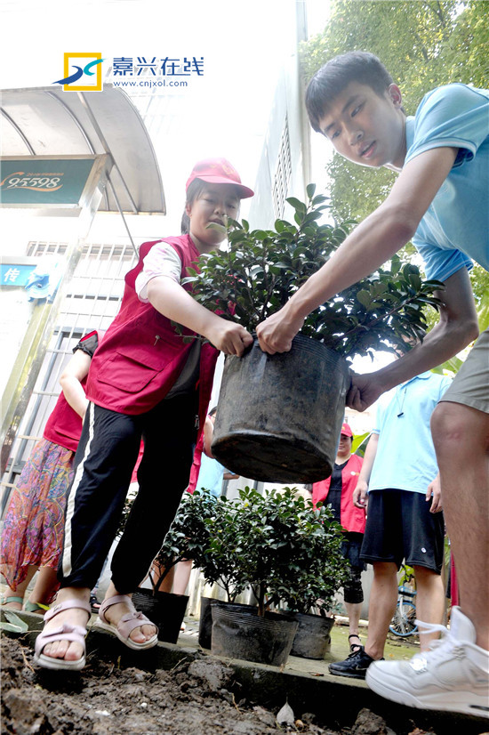 嘉兴在线7月23日讯 今天上午,来自嘉兴学院数信学院的暑期大学生志愿者在新嘉街道月河社区和社区工作人员以及暑期里的小朋友们一起种下10棵象征友谊的茶梅树。