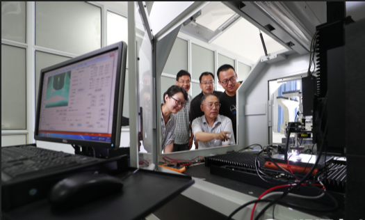 课题组查看首台EHD高分辨率打印机原型机实验情况