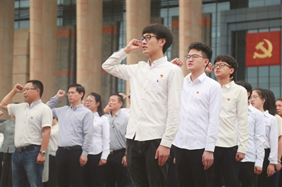 为庆祝党的生日,嘉兴学院近日在南湖革命纪念馆举行新党员入党宣誓暨党员中层干部重温入党誓词仪式。