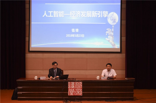 5月23日上午,中国工程院院士、教育部“长江学者”特聘教授、九三学社第十四届中央委员会委员、华东理工大学副校长钱锋教授作客嘉兴学院省身讲堂第104讲,为师生作题为“人工智能:经济发展新引擎”的学术演讲。嘉兴学院副校长胡俊云主持讲座,九三学社中央社会服务部部长徐国权,嘉兴市政协副主席、九三学社嘉兴市委主委马玉华,九三学社省委科教部部长施招英,嘉兴学院党委副书记吕延勤,党委委员、宣传部长柯羽及500余名师生到场聆听。