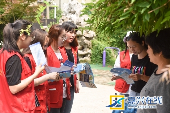 嘉兴在线5月18日讯 为迎接世界无烟日,今天上午,南湖区王安里社区,嘉兴学院会计153班同学组织志愿者向社区居民宣传世界无烟日。志愿者们以“烟草伤害心脏”为主题进行宣讲,让吸烟有害健康的思想观念更加深入人心。