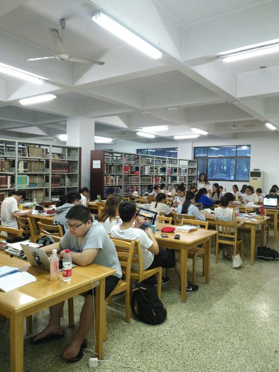 室外天气炎热,但在学院图书馆內,同学享受着空调房的清凉,图书室的宁静。