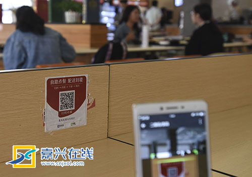 嘉兴在线5月9日讯 今天中午,嘉兴学院美食城,大学生正用手机关注“自助点餐 配送到寝”外卖式服务。据了解,这种配送到寝服务凭借方便快捷的优点受到大学生欢迎,足不出寝便可享受送到手中的美食。