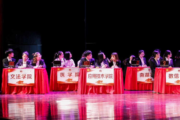 经过初赛选拔,材纺学院等10支分院代表队进入决赛。决赛以“学习新思想 奋进新时代”为主题,分“开天辟地”“砥砺前行”“勇立潮头”三轮,设必答题、抢答题、改错题、论述题四种题型,内容涉及习近平新时代中国特色社会主义思想、2018年政府工作报告、党章和团章知识、红船精神、改革开放等理论知识。经过激烈角逐,师范学院代表队荣获一等奖,数信学院和医学院获二等奖,文法学院、生化学院、应用技术学院获三等奖,机电学院等四个学院获优胜奖。