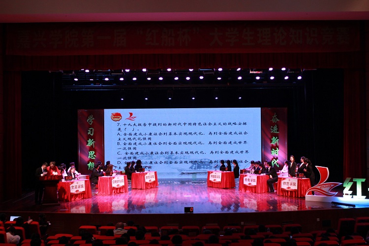 理论知识竞赛是嘉兴学院贯彻党的十九大精神,深入学习习近平新时代中国特色社会主义思想的生动载体,也是“红船旁学子争做新时代青年先锋”主题教育活动的重要内容之一。整个比赛从4月17日开始,分初赛和决赛两个环节。初赛中,全校共有12054名学生通过“理想之光”APP参与网络答题,在网络答题中排名前十的学院入围现场决赛。