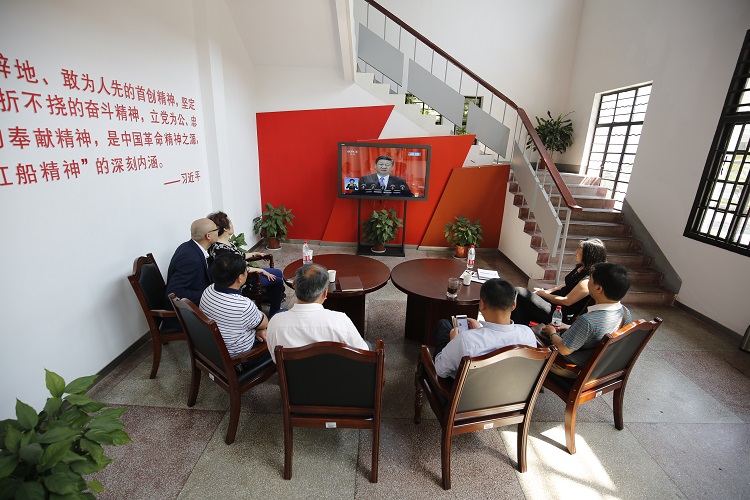 大学生习近平新时代中国特色社会主义思想研究会会长王瑞同学说,习近平新时代中国特色社会主义思想是马克思主义中国化的最新成果。作为“红船旁”学子和习近平新时代中国特色社会主义思想研究会研究会成员,我们应该弘扬红船精神,主动带头学习、宣传、践行好这一伟大理论成果,做中国特色社会主义合格建设者和可靠接班人。