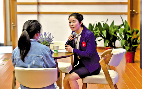 昨天下午,嘉兴学院梁林校区TCL报告厅里,辅导员运用沟通技巧,以情景再现的方式与学生谈心。据了解,此次首届嘉兴市高校辅导员职业能力大赛决赛是在前期初赛评审的基础上,遴选出了17名一线专职辅导员参加最后的角逐。