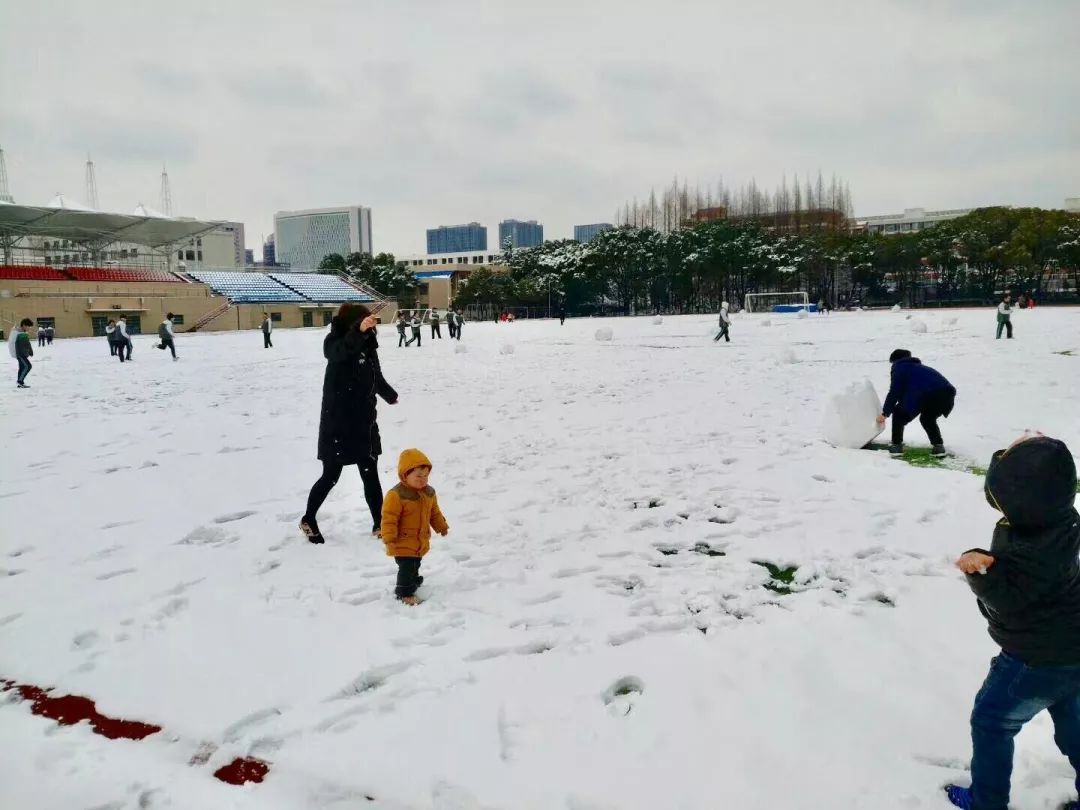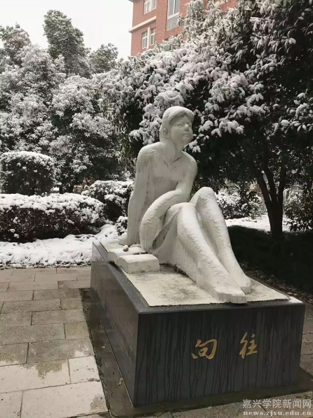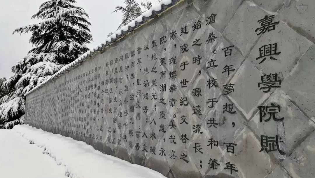 2018年的初雪后,嘉兴学院的操场吸引了很多家长孩子来体验玩雪的快乐。矗立在寒冷白雪上的嘉兴学院赋、医学院无语良师纪念碑、陈省身塑像、陈省身印石、院校训石:方正为人,勤慎治学等,都成了最美的样子。