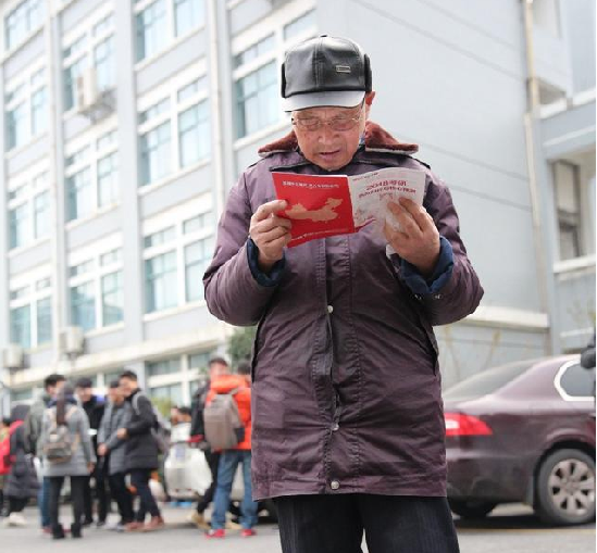 在考点里,这位77岁的考生和来往的年轻人形成鲜明的对比。他说,“我今年77岁了。那么大了还想参加考试,希望广大年轻人更加努力,加油干!”