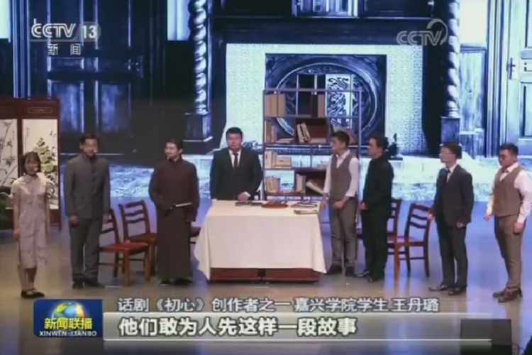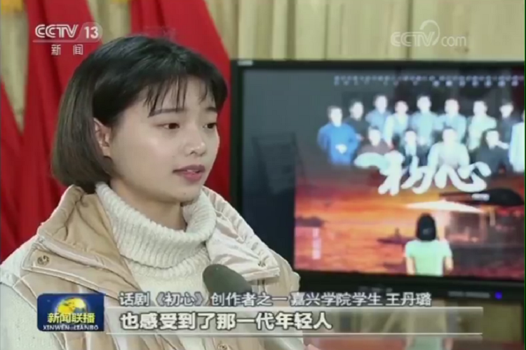 1月14日晚,中央电视台《新闻联播》栏目报道了我校利用红船精神创新思政教育,将红船精神融于思政教育全过程的实践。 报道聚焦了我校师生原创红色话剧《初心》,并且这样说:“在课堂之外,当地的红色资源也成为思政教育的活教材。在南湖之畔的嘉兴学院,中国共产党在红船中的诞生历程被同学们搬上舞台。”期间,记者还采访了《初心》话剧创作者之一文法学院王丹璐同学。