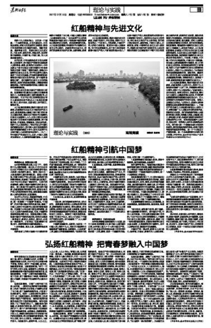 弘扬红船精神,激励广大青年勇立潮头。96年前,在中国共产党创建的历史实践中,从播撒马克思主义革命思想的火种,建立马克思主义学说研究组织,到“南陈北李”相约建党,各地共产党早期组织的建立,再到中国共产党成立“这一开天辟地的大事变”,“在中国历史上破天荒第一次向中国人民提出了反帝反封建的纲领”,无不彰显开天辟地、敢为人先的首创精神。青年时期是最富有生命力和创造力的时期,青年是最具有创造热情和创造潜力的群体。李大钊号召青年“以青春之我,创建青春之家庭,青春之国家,青春之民族,青春之人类,青春之地球,青春之宇宙,资以乐其无涯之生”。正是一批具有初步共产主义思想的年轻知识分子领导了五四爱国运动。打破旧观念,树立新理念,改造旧社会,创造新社会,是他们的共同心声。中华民族伟大复兴离不开创新,迫切需要广大青年以直面困难的勇气、不断创新的精神切实担当起历史使命。实现中华民族伟大复兴的梦想、应对各种前所未有的困难和挑战、创造光辉而美好的未来,动力从哪里来?只能从发展中来、从改革中来、从创造中来。青年是创新的主力军。青年人就像八九点钟的太阳,充满朝气与活力,充满梦想与希望。创新和青春相碰撞,会擦出让人意想不到的火花。习近平总书记说:“生活从不眷顾因循守旧、满足现状者,从不等待不思进取、坐享其成者,而是将更多机遇留给善于和勇于创新的人们。”广大青年要将红船精神转化成为推动创新创业的强大动力,坚持用创新发展的理念规划自己的人生目标,心系祖国人民,努力在改革开放中闯新路、创新业,不断开辟事业发展的新天地,让青春梦想与中国梦交相辉映。