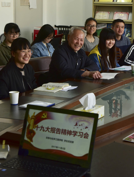 嘉兴在线11月2日讯 今天下午,嘉兴学院生物与化学工程学院学生党支部邀请嘉兴市新四军历史研究会的四名忘年交爷爷党员一起学习十九大报告精神。爷爷们为同学们述说起了各自的入党历程,分享了十九大报告的学习体会,二十多位大学生党员现场聆听受益匪浅。
