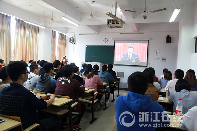 浙江在线杭州10月18日讯(通讯员 陈婧 林晓莹 陶富军 杜晓哲 浙江在线记者 吴俏婧)10月18日上午,万众瞩目的中国共产党第十九次全国代表大会在北京人民大会堂隆重开幕。上午9点,浙江高校的师生们集中收看了党的十九大开幕会盛况,怀着激动的心情聚精会神地聆听习近平总书记的报告。他们有啥体会和感受呢?高校的师生们这样说。