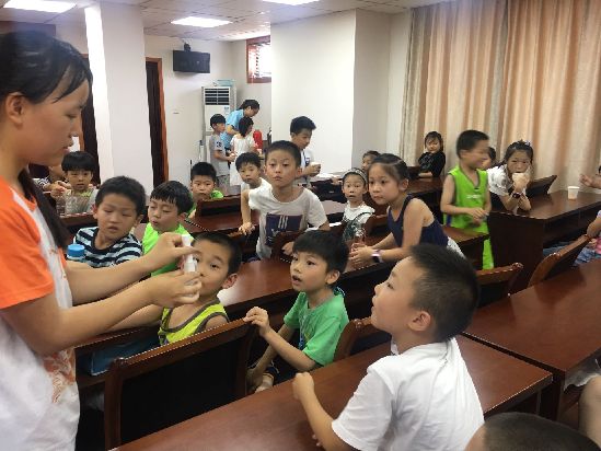 两点半,活动正式开始。本次活动以授课互动的方式举行,梅艳同学作为主讲人,首先给小朋友们简单讲解了劣五类水是什么,之后通过一个有趣的小实验带动小朋友们的好奇心,使小朋友们更具体的认识到日常生活中水质对于健康生活的重要性。实验结束后,实践团的队员们给每个小朋友发了一把白色的扇子,让小朋友们在上面画下他们对今天上课内容的理解。绘画过程中,小朋友们互相帮助,现场十分热闹。小朋友们绘画结束后,纷纷举起自己的作品,向队员们和社区负责人展示他们的成果。