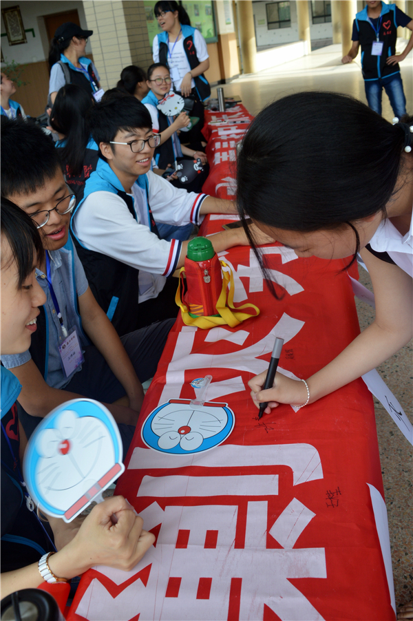 中午,志愿者们在杨庙小学展开“剿灭劣V类水,青春护航天凝”的横幅,鼓励小学生们写下自己的签名和想说的话,倡议同学们一起加入到保护家乡环境的队伍中来,让家乡的水更清、天更蓝;志愿者们还向同学们宣传普及了相关的环保知识,并鼓励小学朋友学习环保知识,提升环保意识。