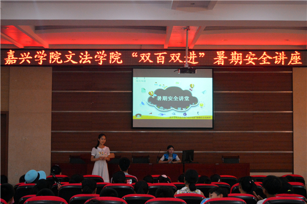7月7日上午,嘉兴学院文法学院“双百双进”赴嘉善天凝暑期社会实践团走进嘉善县杨庙小学,开展了以“法制与暑期安全”、“助力剿灭劣V类水”为主题的青少年法制与安全讲堂、未成年人犯罪模拟法庭、剿劣行动签名仪式等志愿服务活动。