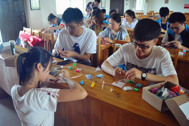 8号上午9点,志愿者们开设了一堂支教手工绘画课,以“Love Green爱绿护绿我以我手绘天凝”为主题,用软陶泥和绘画的方式,表达对建设美丽天凝的美好愿望,将想象中的天凝制作出来。在此次活动中,志愿者们和学生们共同合作、共同绘制,期间还采访了学生们的创作灵感与感受,这不仅使大家与天凝学生搭建起了友谊的桥梁,更是提高了学生们担负起保护家园的责任意识感。最后,志愿者们还邀请大家带着作品与横幅一起合影留念。