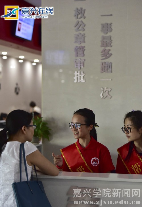 今天上午,嘉兴市南湖区行政审批局大厅里,来自嘉兴学院医学院的大学生们忙碌在“帮办”岗位上,助力老百姓体会“最多跑一次”带来的便利。南湖区行政审批局实行“三办”制度,即提供“代办”、“帮办”、“协办”服务,方便百姓办证办照,也让参与暑期实践的大学生们更深切地体验到“最多跑一次”改革的实质内涵,跑出了"嘉"速度。
