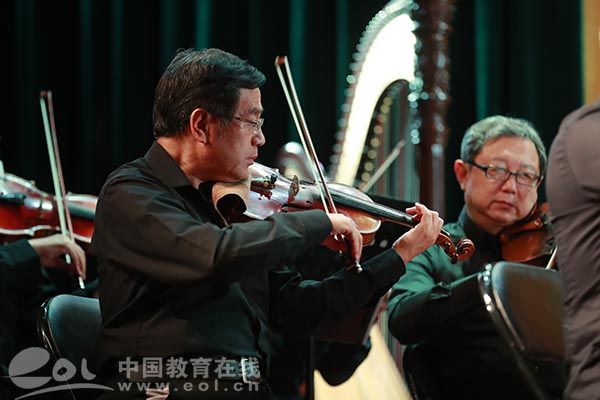 音乐会在一曲大气磅礴、震撼心灵的红色旋律《红旗颂》中拉开了序幕。耳熟能详、家喻户晓的小提琴协奏曲《梁山伯与祝英台》,改编自蒙古族民歌的大提琴曲《鸿雁》,轻快活泼、欢庆喜悦的小提琴齐奏《新春乐》,由郭沫若作词,原国务院副总理李岚清谱曲,旋律优美、激情澎湃的钢琴协奏曲《鉴真东渡随想曲》、经典中外名曲《白毛女》、《卡门序曲》等给师生带来了一场精彩的音乐盛宴,赢得了阵阵掌声。其中,一曲气势恢宏的《没有共产党就没有新中国》将整场演出推向高潮,台下师生也不约而同地跟着节奏齐声歌唱,表达对党的感恩与祝福。最后,演出在一曲雄壮有力的《歌唱祖国》中落下帷幕。