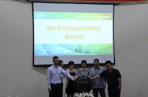 政、校、企三方共同按响启动球,见证嘉兴学院创业导师库的建设启动工作
