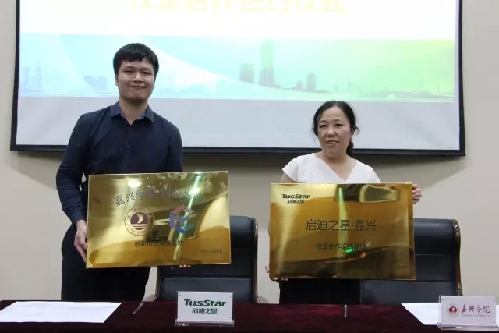 在学子和导师们的共同见证下,启迪之星(嘉兴)执行总经理周海鹏与嘉兴学院创业学院院长左军签署了《关于校企双方创新创业工作开展的合作协议》,并互授铜牌,正式确立启迪之星(嘉兴)为嘉兴学院“大学生创新创业实践基地”。双方通过诚信合作着力推动大学生创新创业教育与创业团队的培训服务工作。