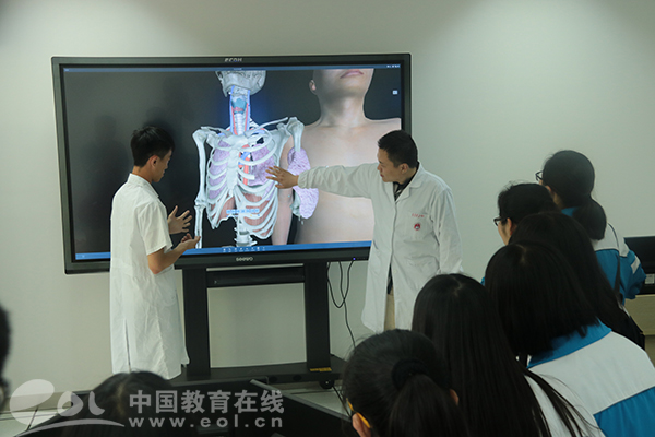 当天下午,他兴致勃勃地来到了嘉兴学院,所上的第一节课是“艺术欣赏课”,这堂课设在嘉兴学院的设计学院。在这里,他津津有味地欣赏了该学院富有设计感和想象力的毕业设计作品展,同时也欣赏了学生“真题实作”,为企业量身定制的各类艺术设计作品。第二节课,他被带到了医学院的“医学实验课”,课程设在医学院的实验中心。