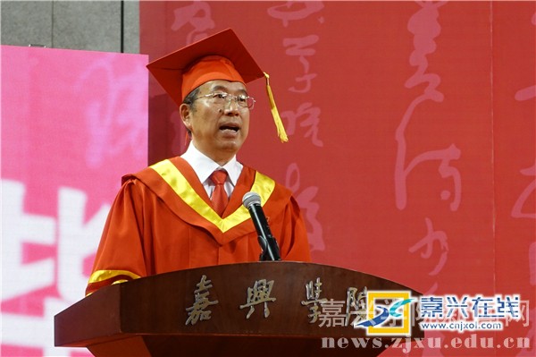 在毕业典礼上,嘉兴学院校长盛颂恩代表学校发表讲话,他首先对2017届全体毕业生顺利毕业表示祝贺。与此同时,他对全体毕业生提出两点期望:一是与时俱进,顺时而变。二是不忘初心,懂得坚守。他说,现在所学到的知识、所拥有的能力是远远不够的,同学们在今后要学会拥抱变化、适应变化,不断完善自我。他也叮嘱各位毕业生要铭记毕业证书上“方正为人 勤慎治学”、“求是求真求正”那十四个大字,坚守住正直做人、踏实做事的准则。最后,他深情地说道:“亲爱的同学们,这里是中国好声音诞生的地方,母校期待着用你的笑容去改变这个世界,把生命的好声音带回到这里。无论时光怎么流逝,岁月如何变迁,请记住,嘉兴学院永远是你们的家,期盼你们常回嘉看看。”
