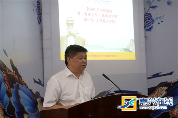 今天上午,由团中央“青年之声”国学教育联盟、中国孔子基金会孔子学堂推进委员会主办,嘉兴学院孔子学堂、嘉兴海华武馆孔子学堂、“青春汉字节”组委会承办的全国孔子学堂培训暨“青年之声 青春汉字节”第一站走进嘉兴学院活动,在嘉院越秀校区第四报告厅举行,嘉兴学院、团中央“青年之声”国学教育联盟、嘉兴市山东商会、“青春汉字节”组委会相关负责人分别进行致辞,中国孔子基金会理事长王大千进行主题演讲。