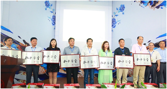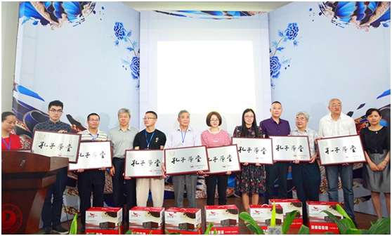 浙江省儒学学会执行会长、全国儒学社团联席会议秘书长吴光等嘉宾为新授牌的孔子学堂机构进行授牌,并赠送国学机。