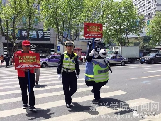 “礼让斑马线,我为您点赞”。上午10点多,在中山路与县前街路口,也就是旭辉广场的斑马线前,新成立的嘉兴市交通志愿者服务队队员们也已“上岗”。