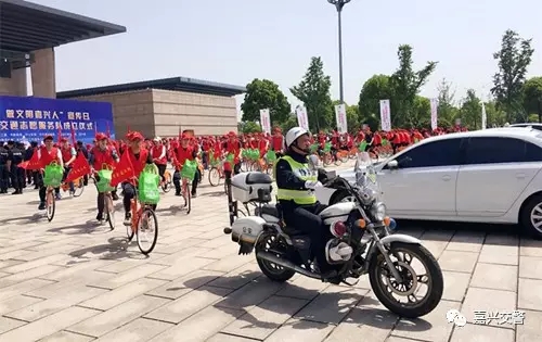 大学生文明交通志愿服务队自行车骑行上街宣传。