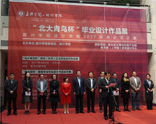 大艺在线4月6日讯 4月6日上午,嘉兴学院设计学院2017系列文化展演开幕式暨“北大青鸟杯”毕业设计作品展在嘉兴市图书馆隆重举行。嘉兴市人大常委会主任刘冬生、北大青鸟集团副总裁傅建国、副总经理陆钰铭,嘉兴学院校长盛颂恩、副校长周珊出席了本次文化展演开幕式,嘉兴学院相关职能部门领导、设计学院全体毕业生导师和毕业生也共同见证了开幕式。