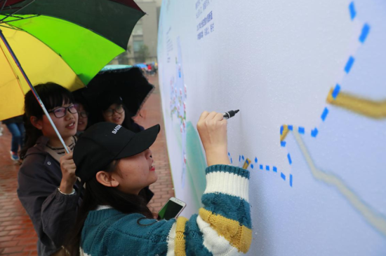 在全体学生庄严而恢宏地宣誓后,该校党委书记黄文秀对同学们表达了殷殷期望和谆谆教导。他指出,要始终铭刻红船烙印,击楫中流、勇立潮头,积极投身党委政府和学校中心工作;要始终铭记办学初心,学字为先、干字当头,积极投身地方应用型大学建设;要始终铭志教育提升,以师带生,师生协力,积极投身学校改革发展服务质量提升。最后,各服务团老师、学生代表纷纷在结对县市区作战图上签名,全面吹响了学校助力剿灭劣V类水行动的冲锋号。
