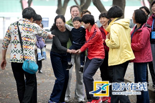 嘉兴在线4月8日讯 今天上午,2017全国女排元老队气排球赛在嘉兴学院体育馆举行,130多名原国家队及八一、浙江和山东等省队的女排元老齐聚禾城,共话友谊。比赛场外,1983年服役国家队的女排元老朱凤霞和同伴带着第三代的小孙子赶来与老友们相聚,看到活泼可爱的小孙子,一群奶奶级女排元老爱不释手,抱着、抬着尽情的和小家伙享受天伦之乐。
