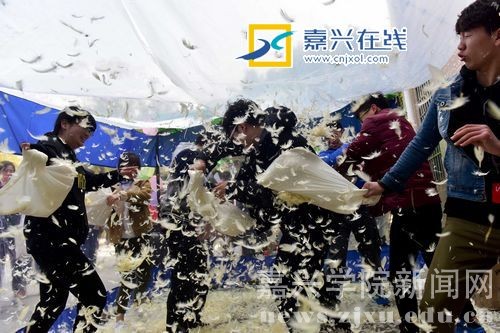 嘉兴在线3月21日讯 今天中午,嘉兴学院越秀校区广场上,同学们在“睡眠日”主题活动中展开了热闹非凡的枕头大战。当天是第17个世界睡眠日,主题是“健康睡眠,远离慢病”,嘉兴学院的大学生们用丰富多彩的活动,倡导大家健康睡眠。