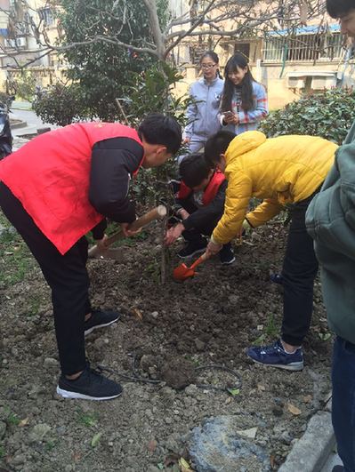 嘉兴在线讯 3月12日是中国的植树节,为增强大家义务植树的意识,提倡大家爱护花木、珍惜绿色,3月9日下午,嘉兴学院的志愿者来到运南社区,为社区种树。