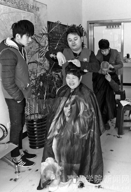 昨天,嘉兴学院志愿者来到新嘉街道竹桥社区便民服务大厅,为老年人开展义务理发活动。