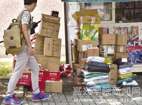 9月12日上午,嘉兴学院越秀校区校园里,随着开学季的到来,网购的各种包裹快递也纷至沓来。