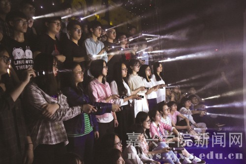 5月22日晚,嘉兴学院南湖学院举行2016届毕业生欢送晚会。舞台上,在温馨满满的光影秀中,学弟学妹们用手电筒在幕布上打出光点组合成图案,让学姐学哥们回顾大学四年的难忘瞬间,为走向社会的他们奉上美好祝愿!