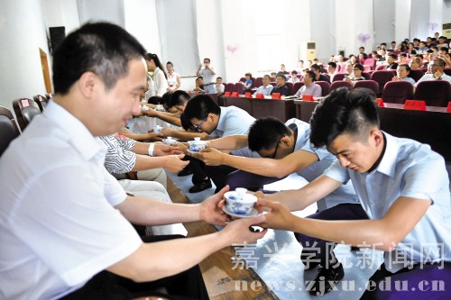 6月14日下午,嘉兴学院南湖学院“少帅班”举行结业典礼,10名结业学员在典礼上向自己的导师行敬茶礼,感谢导师的教导之恩。