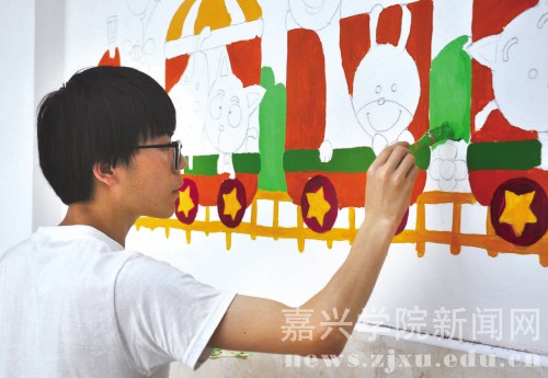 昨天下午,嘉兴学院设计学院的大学生志愿者来到嘉兴市社会福利院,为孩子们的阳光教室绘制了漂亮的卡通图案,为孩子们送去一份阳光温暖。