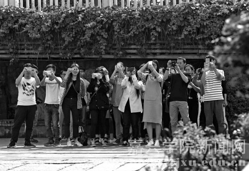 昨天下午,月河街区的青石板上走来一群用手机拍摄的大学生,原来嘉兴学院视觉传达系将摄影课搬到了月河街区,同学们在老师的带领下通过手机摄影来学习构图和取景。